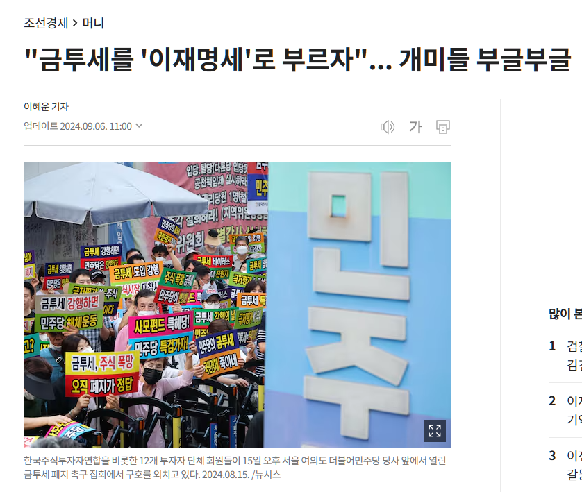 “금투세를 ‘이재명세’로 부르자”... 개미들 부글부글