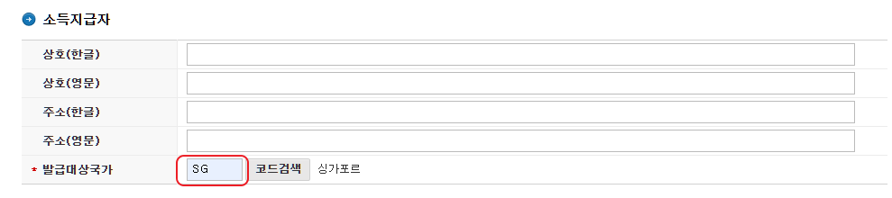 !지급 - 지급정보 - 싱가포르 - 세금정보 추가