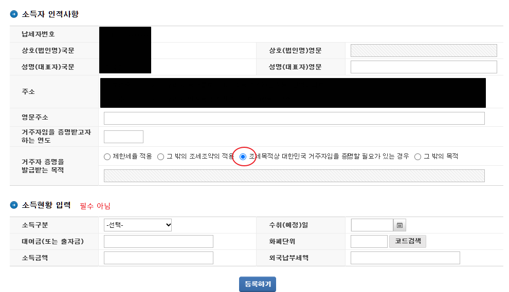수익으로 전환하기 위해서는 거주자 증명서를 신청해야 합니다!