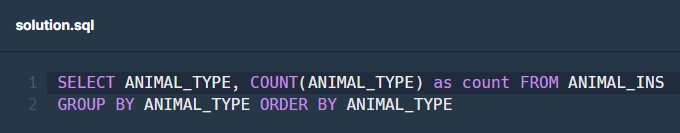 1. ANIMAL_TYPE와 ANIMAL_TYPE의 개수가 필요하므로 Table에서 가져옵니다. (COUNT의 컬럼명 AS로 변경)