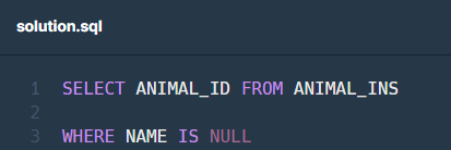 코딩테스트 연습 - 이름이 없는 동물의 아이디