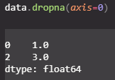 - dropna()는 axis를 지정할 수 있는데, Series는 하나의 축밖에 없기 때문에 dropna()를 할 경우 Default axis=0을 기준으로 dropna()를 실행한다.