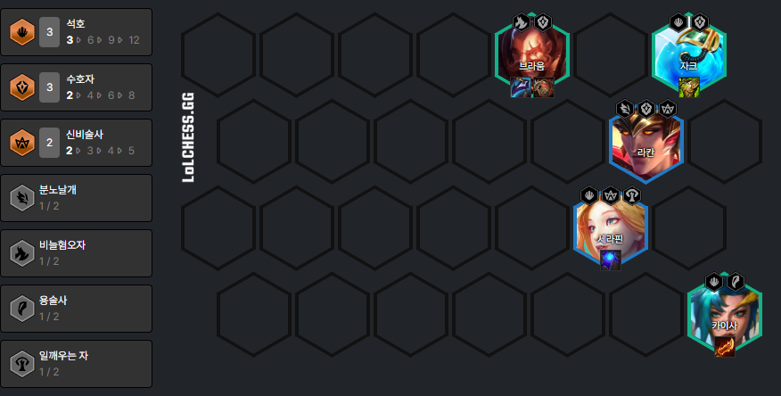 5렙) 용술사(-), 수호자 (+, 브라움 or 라칸 in), 신비술사 (+, 세라핀)