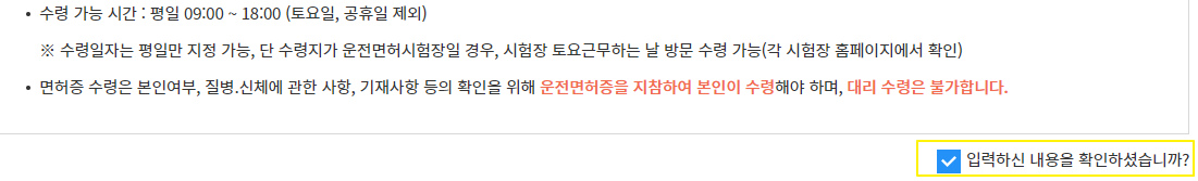 6) 면허증 종류 ㆍ 수령지 ㆍ 날짜 선택