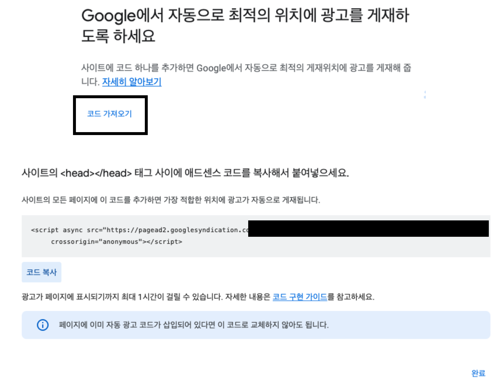 해당 작업까지 했다면, 구글 광고가 정상적으로 달기위한 기초작업을 했다고 보시면 됩니다.